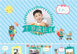 10岁生日纪念册卡通成长档案生日快乐电子相册PPT模板