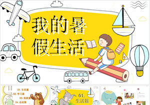 卡通彩色鱼儿我的暑假生活教育PPT模板
